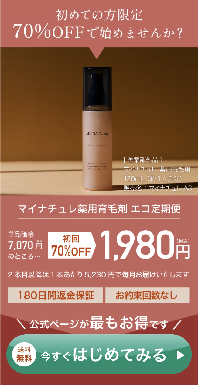 「薄毛や抜け毛に悩むあなたへ。自然成分で実感する、髪のボリュームアップ!」[マイナチュレ]