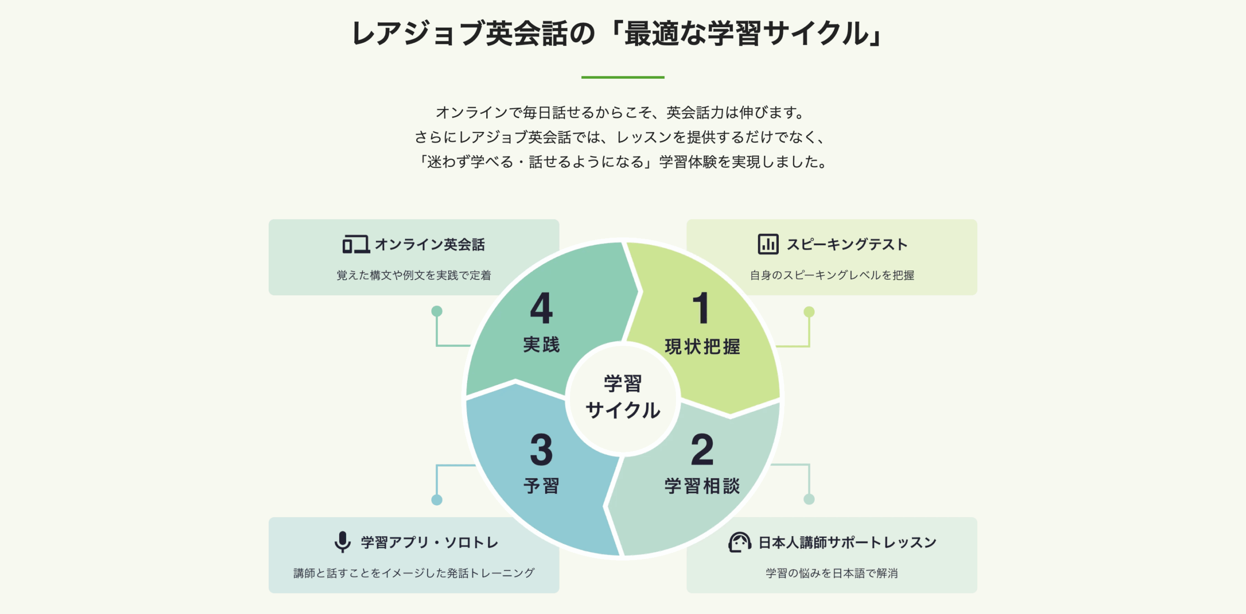 学習者が求める英会話力を習得するためには、効率的かつ効果的な学習サイクルをすることは欠かせません。