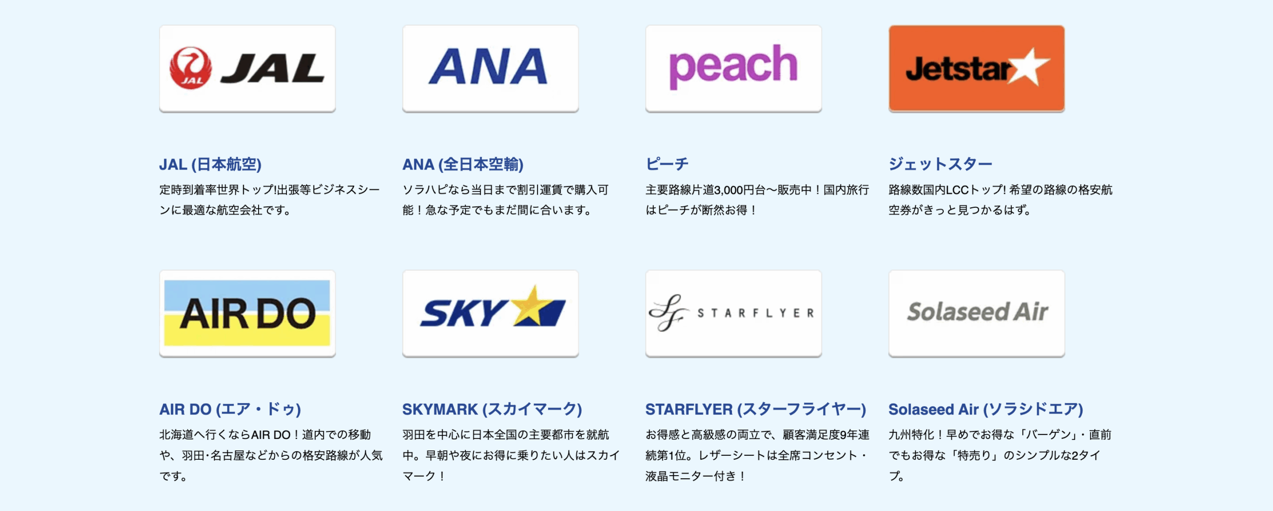 もちろんJetstarやSKYMARKなどのLCCも取り扱っています。