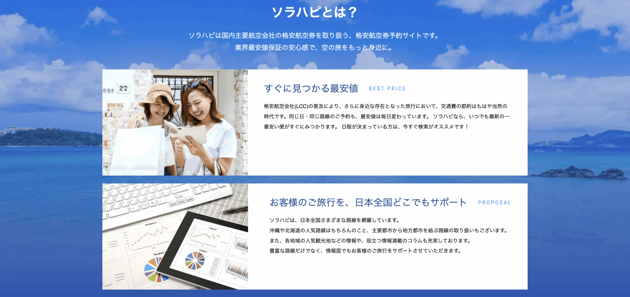 【ソラハピ】は「格安航空券」を比較・検索・予約ができるサービスです。