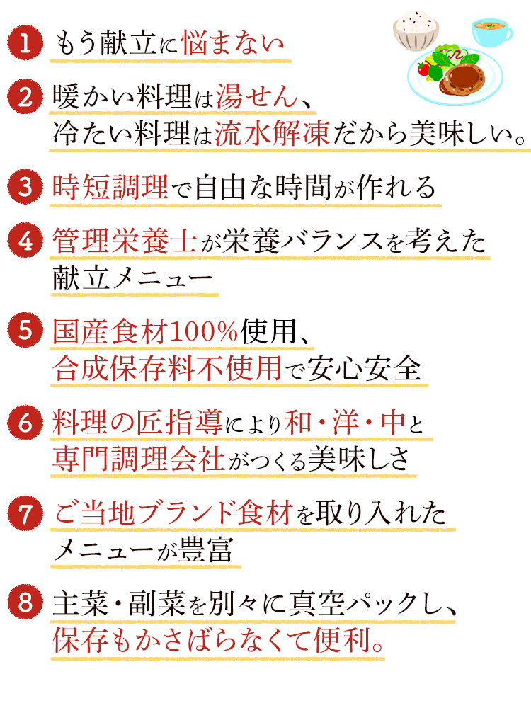 5.調理は湯せん・流水解凍と簡単に誰でもできます