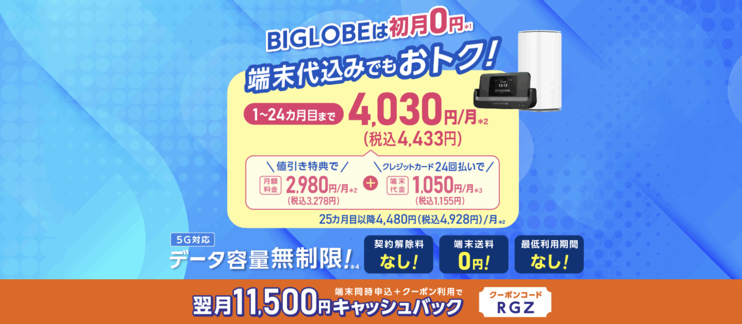 5G対応の高速Wi-Fiが無制限に使えて初月0円!