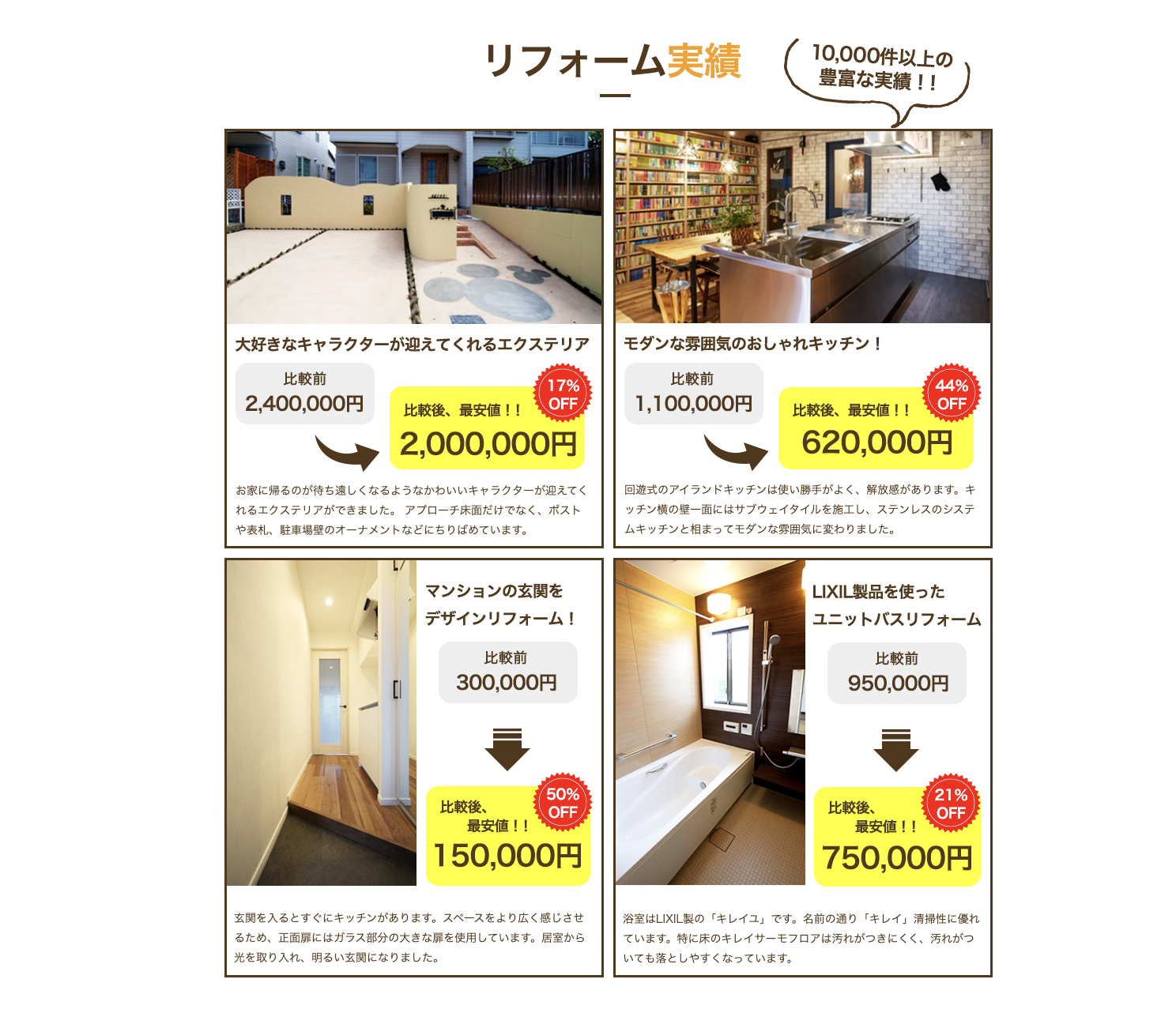 - 安心感: 提供される情報は信頼性が高く、安心してリフォームを進められます。