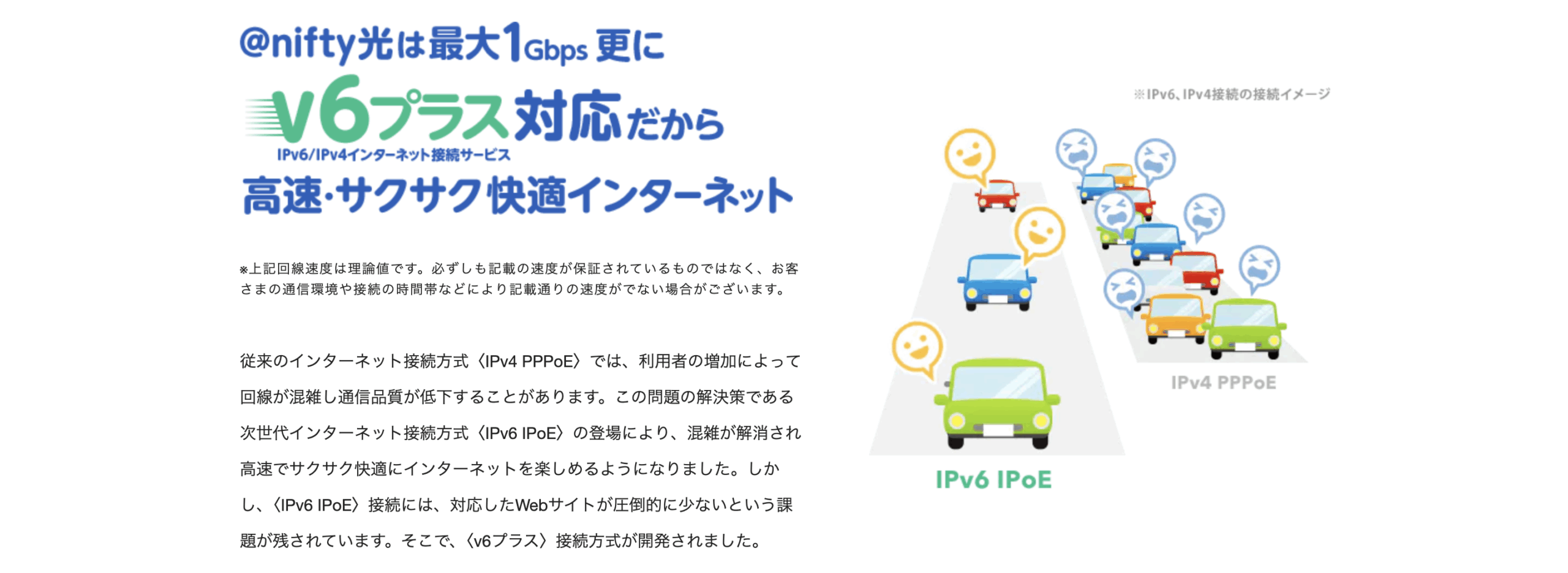 最大1Gbps。さらに、「v6プラス」対応だから、